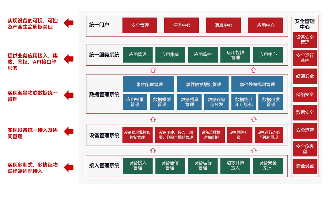 智慧軍營(yíng)物聯(lián)網(wǎng)系統(tǒng),通過(guò)云計(jì)算、大數(shù)據(jù)和人工智能實(shí)現(xiàn)對(duì)軟硬件結(jié)合管理,使傳統(tǒng)軟件快速轉(zhuǎn)化為智能硬件,對(duì)營(yíng)區(qū)內(nèi)進(jìn)行智能提升,實(shí)現(xiàn)一站式托管—高效性、低成本。提升營(yíng)區(qū)智能化,提高營(yíng)區(qū)物聯(lián)網(wǎng)落地能力,數(shù)字整合為營(yíng)區(qū)智能化提供決策。具有高響應(yīng)、高擴(kuò)展性、提供輔助決策分析、硬件統(tǒng)一管理、多協(xié)議適配的特色。
